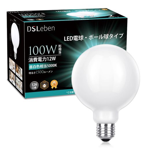 DSLEBEN LED電球 100W形相当 昼白色 E26口金 一般電球 ボール球形 全方向タイプ エジソン電球 2個入り 省エネ 密閉形器具対応 断熱材施工器具対応 調光器非対応