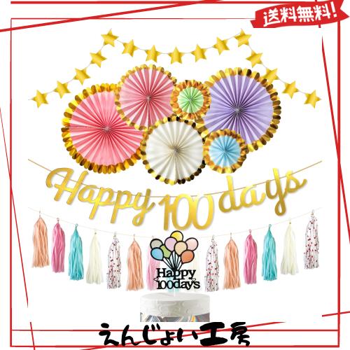 ?【セット内容】?ペーパーファン x1セット (6枚)、?ゴールドスター・ガーランド x1、?「Happy 100 Days」レターバナー x1、?タッセルガーランド x1セット、?「Happy 100 Days」ケーキトッパー x1