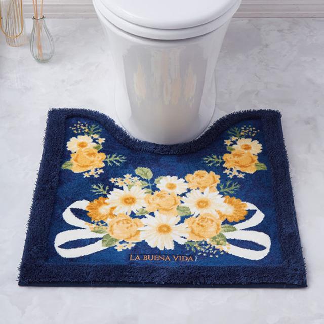 トイレマット 花柄,トイレマット 洗える,トイレマット おしゃれ,トイレマット,60×60cm,パイル,すべり止め,滑り止め,すべりにくい,滑りにくい,滑り止め加工,ズレにくい,ずれにくい,洗える,ウォッシャブル,洗濯,洗濯機,丸洗い,清潔,トイレ,インテリア,トイレタリー,トイレグッズ,トイレ用品,おしゃれ,お洒落,オシャレ,かわいい,可愛い,花柄,花,フラワー,エレガント,上品,ネイビー,紺,イエロー,黄色,