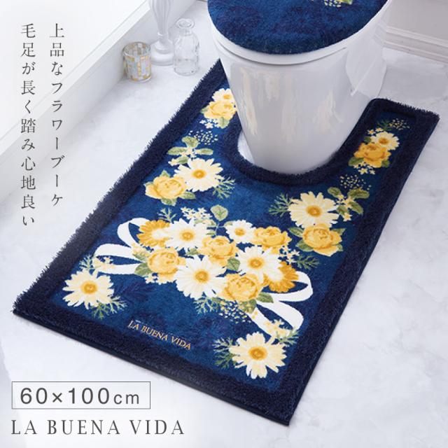 トイレマット 60×100cm 耳長ロング すべらない 滑り止め 洗える 高級 花柄 おしゃれ 耳長ロングトイレマット ブエナヴィーダブーケ