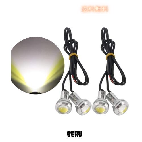 ◆商品名:X-STYLE LED デイライト 18mm 白 スポットライト ボルト型 大玉計 防水 高輝度 埋め込み型 12V専用 銀白 4個セット(ホワイト)
