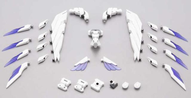 ウイングユニット×左右各1 背部アームユニット×1 小羽根(小)×6 小羽根(大)×2 尾羽ユニット×左右各1 グリップ×1 固定式連結拡張アタッチメント×1 可動式連結拡張アタッチメント×2 カバーパーツ×2