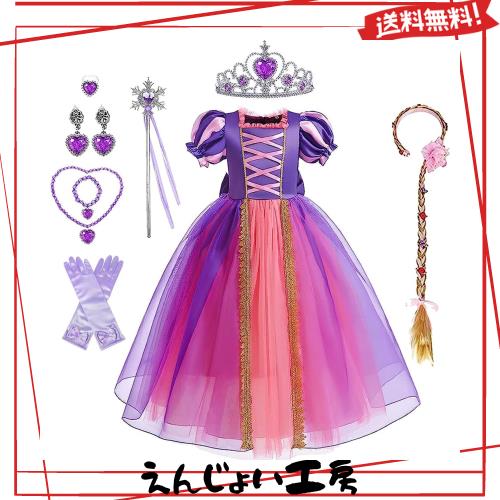 [KOCEKID] ラプンツェル風 ドレス 子供 ラプンツェル風 コスプレ ディズニー風 プリンセス ドレス 登場 ハロウイン コスプレ 仮装 変身