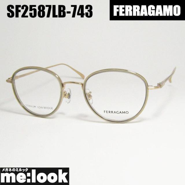 FERRAGAMO フェラガモ レディース ラウンド ボストン 眼鏡 メガネ フレーム サングラス SF2587LB-743-49 度付可 カーキ ゴールド リビジョン製レンズでお好きなサングラス作成可能