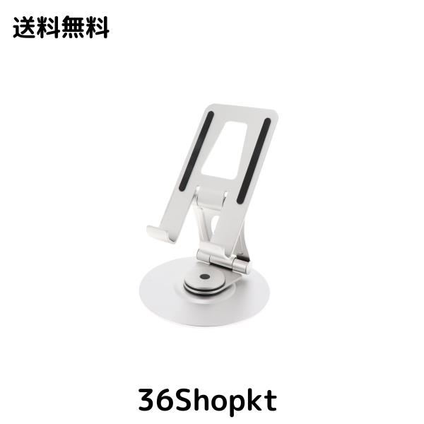 ◆商品名:MOTTERU (モッテル) 13インチまで対応 スマートフォン タブレット用 360度回転式くるくるスタンド (iPhone/Android/iPad/POSレジ) シルバ