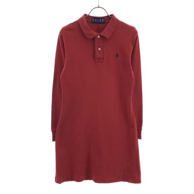 ラルフ ラルフローレン 長袖 ポロシャツ ワンピース M レッド RALPH RALPH LAUREN レディース