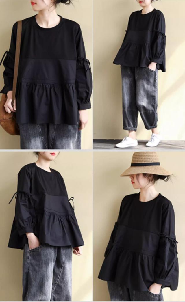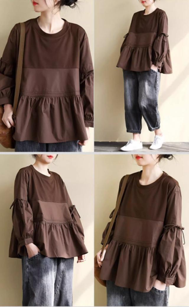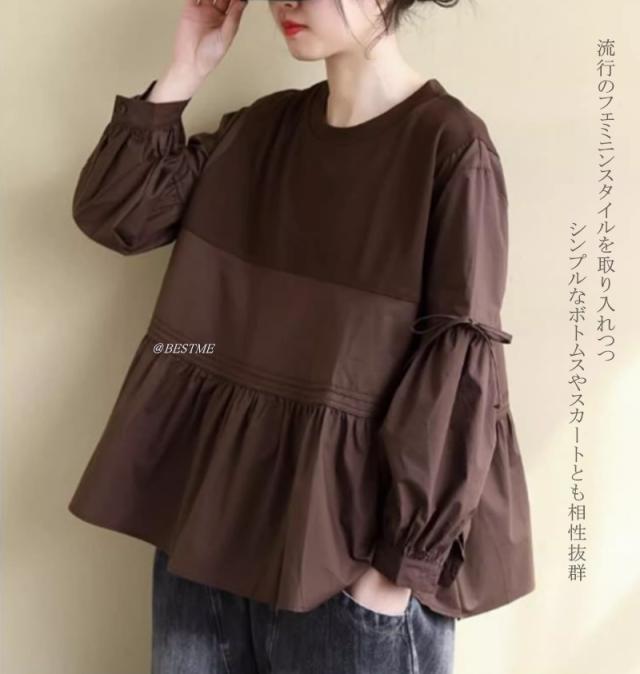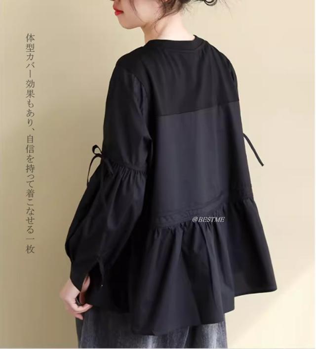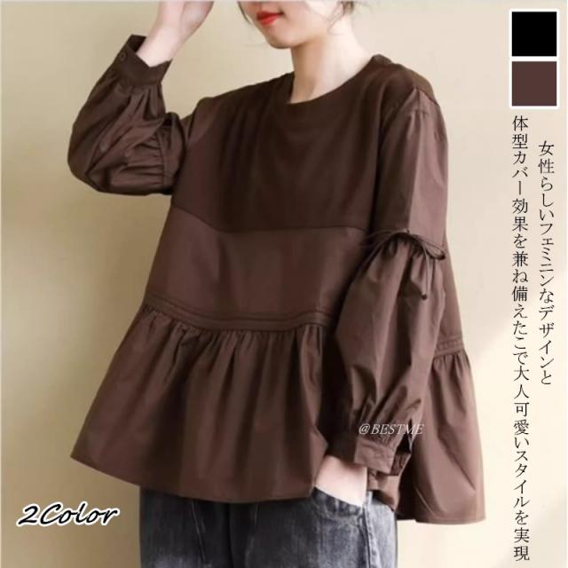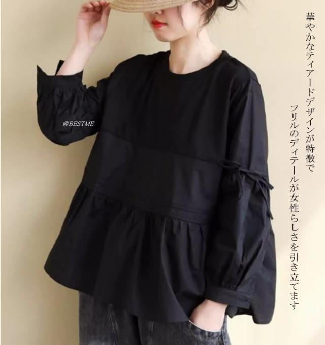 送料無料 ティアードブラウス フリル トップス かわいい 体型カバー 長袖 大人可愛い キレイめ フェミニン トップス レディース 新作 通勤 通学 痩せ見え
