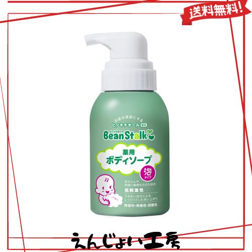 【販売名】ビーンスターク薬用ボディソープf 【商品について】お肌を清潔にするヒノキチオールを配合した、赤ちゃんや刺激に敏感な方のための低刺激性薬用ボディソープです。ヒノキチオールがお肌を清浄・殺菌・消毒し、体臭や汗臭、にきびを防ぎます。使いやすい泡タイプで、うるおい成分によりしっとりと洗い上がります。 【特徴】 ヒノキチオール配合、無香料・無着色・弱酸性・パラベン(防腐剤)無添加、アレルギーテスト済み(すべての方にアレルギーが起きないというわけではありません) 【内容量】350ml 【成分】・有効成分:ヒノキチオール ・その他の成分:ラウロイルメチル-β-アラニンナトリウム液、ヤシ油脂肪酸アミドプロピルベタイン液、N-ヤシ油脂肪酸アシル-N-カルボキシメトキシエチル-N-カルボキシメチルエチレンジアミン二ナトリウム、濃グリセリン、エタノール、リン酸、精製水 医薬部外品、製造国:日本