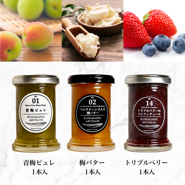 贅沢コンフィチュール3種セット 青梅ピュレ 梅バター トリプルベリー【送料無料】 |無添加 ジャム 国産 熊本 フルーツ 着色料 保存料 不使用 職人 父の日 母の日 72b4