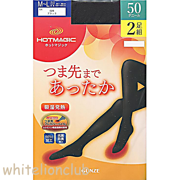 GUNZE(グンゼ)HOTMAGIC(ホットマジック)レディースタイツ、50デニール、2足組。