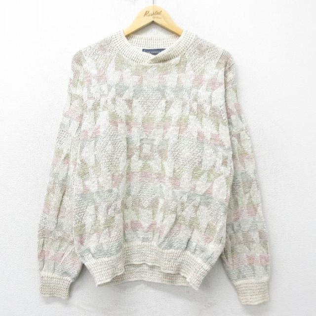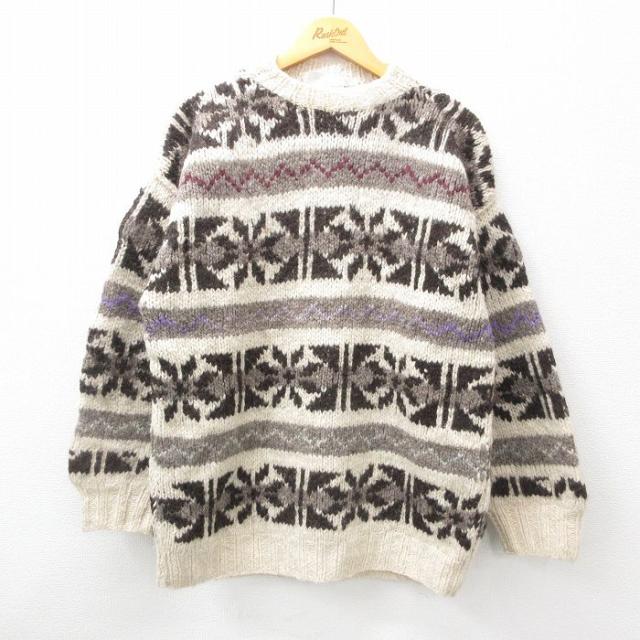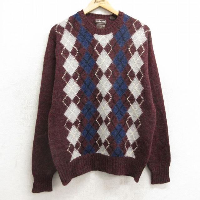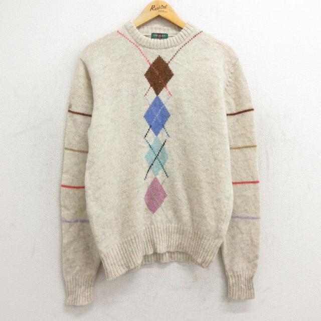 【商品名】 M★古着 長袖 セーター メンズ 90年代 90s アーガイル シェットランドウール クルーネック ベージュ他
