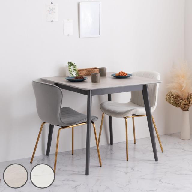天板は、大理石調の高級感や清潔感が溢れる上品な仕上がりです。脚には天然木パイン材を使用し、木目が美しく肌触りが魅力的です。
