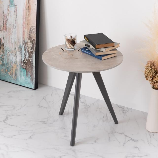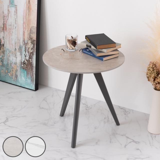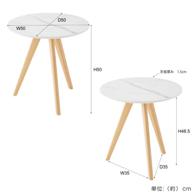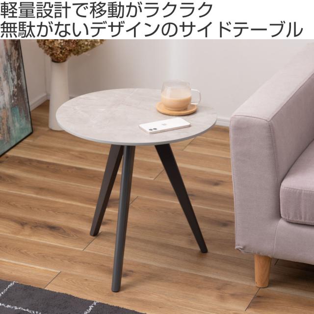 サイドテーブル 円型 直径50cm 高さ50cm 大理石調 ラウンドサイドテーブル ( 丸 ラウンド テーブル ナイトテーブル ミニテーブル ソファ ベッド 横 ストーン調 石目調 スタイリッシュ モダン )