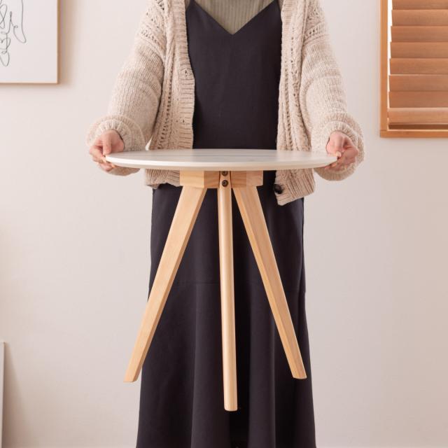 シンプルで無駄のないデザインのサイドテーブルです。ベーシックな天板と天然木の脚の組み合わせが上品な印象を与え、お部屋をおしゃれに演出してくれます。