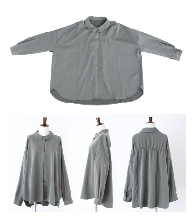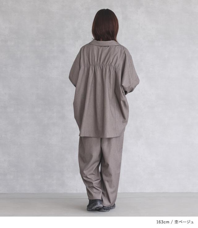 『バックシャーリングシャツ』※メール便可※【10】[シャツ 長袖 レディース トップス ブラウス ロングシャツ 羽織 シャーリング ドロップショルダー 襟付き スナップボタン レイヤード 重ね着 セットアップ]