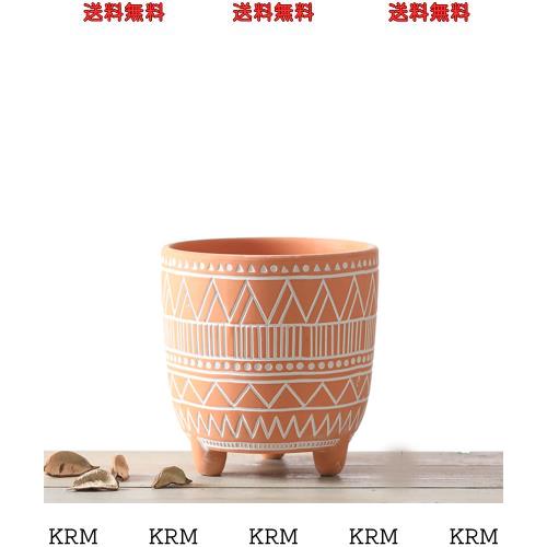 景徳焼 植木鉢 陶器鉢 おしゃれ 鉢 -プランター 底穴 赤い陶 陶土 素焼き調 几何模? レトロな植木鉢 プランター 鉢植え 北欧 室内 インテ