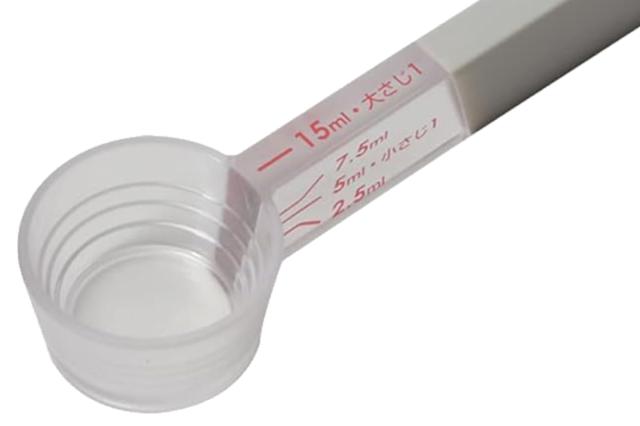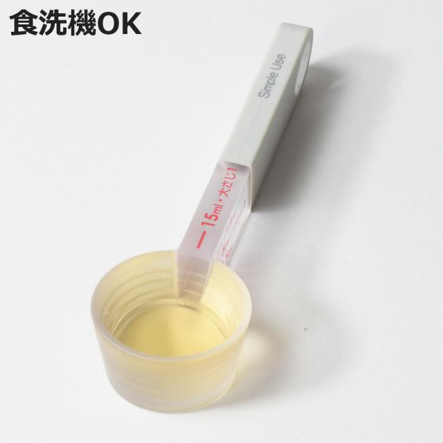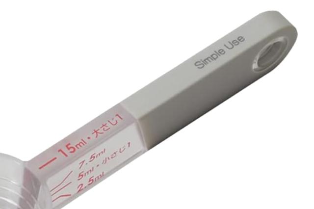 これ1つで、大さじ1(15ml)・大さじ1/2(7.5ml)・小さじ1(5ml)・小さじ1/2(2.5ml)の4種の計量ができます。スプーン部分が透明なので、見やすく、微調整がしやすいです。食洗機対応で、お手入れも簡単です。