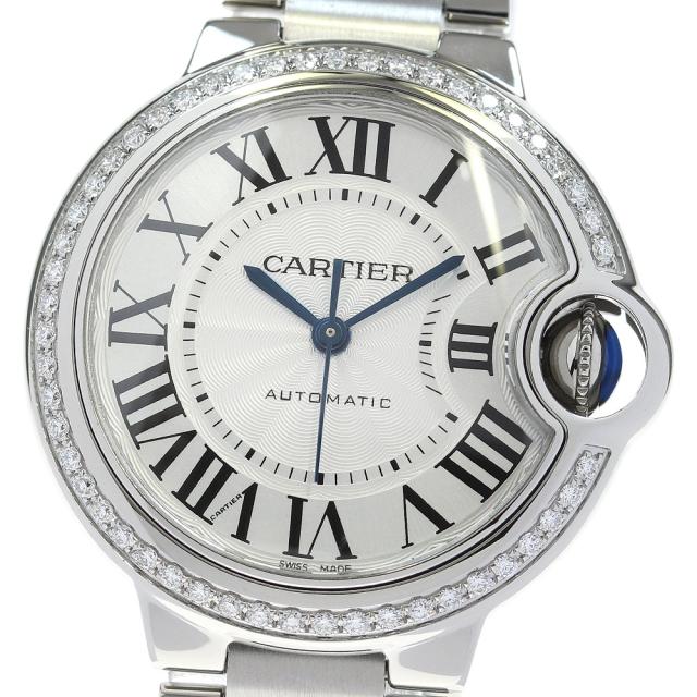 カルティエ CARTIER W4BB0016 バロンブルーMM ダイヤベゼル メーカーOH済 自動巻き ボーイズ 美品 箱・保証書付き_834071