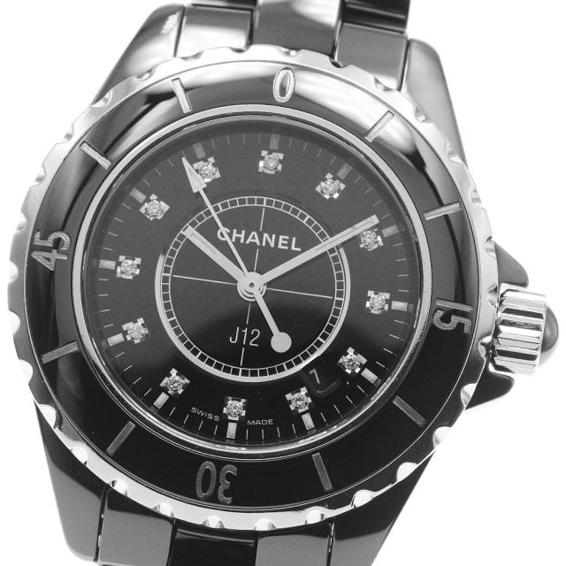 シャネル CHANEL H1625 J12 黒セラミック 12Pダイヤ クォーツ レディース 良品 保証書付き_838055【ev15】