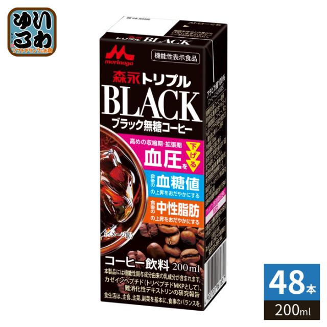 森永乳業 トリプルブラック 200ml 紙パック 48本 (24本入×2 まとめ買い) コーヒー飲料 BLACK 無糖 機能性表示食品
