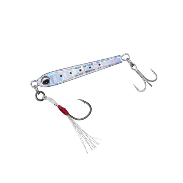 メバル、アジのみならずカサゴやメッキ、カマス、ショゴなどの小型回遊魚も狙える万能ジグ「プリズナー」が、SaqSasアシストフックに強力発光グローティンセルをまとってリニューアル。