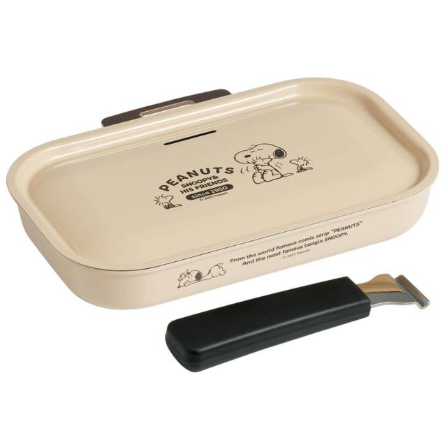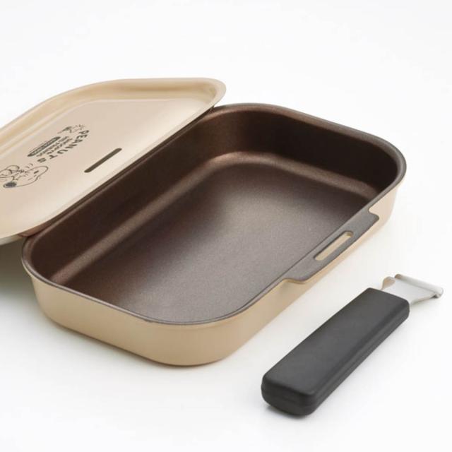 グリルパン スヌーピー 着脱ハンドル付き 蓋付き グリルクッカー ( 魚焼きグリル ガス火対応 グリルプレート SNOOPY フタ付き アルミ製 専用ハンドル グリルトレー グリル用トレー グリル用トレイ 角型 PEANUTS キャラクター )