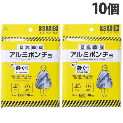 小久保工業所 緊急簡易アルミポンチョ 静音タイプ 10個 防災用品 防災 災害 アウトドア 保温 防水 防風 携帯『送料無料(一部地域除く)』