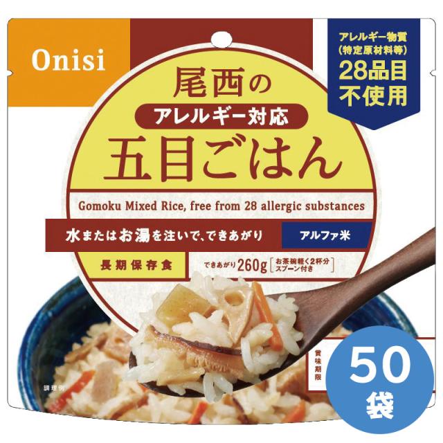尾西食品 保存食 アルファ米 五目ごはん (アレルギー対応品) 50袋入