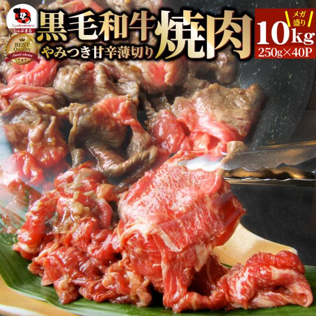 黒毛和牛 切り落とし 牛肉 焼肉 霜降り10kg(250g×40)和牛 肉 ギフト プレゼント 食品 お祝い タレ漬け 送料無料 贈り物 贈答 祝い プレゼント お肉の しゃぶまる