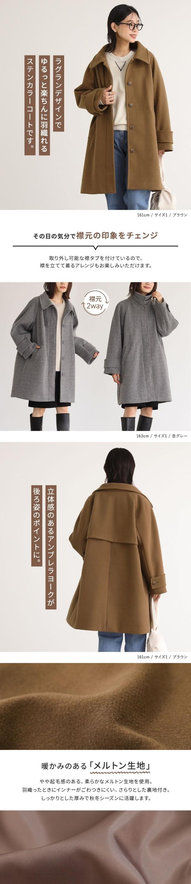 コート レディース アウター ステンカラーコート ミドル丈 襟元2way スタンドネック アンブレラヨーク メルトン生地 裏地付き ミドルコート 【TP】 羽織り ブルゾン ジャケット ハイネック 立ち襟 襟付き n'OrLABEL ノア—ルレーベル 大人女子 大人可愛い お洒落可愛い 大人カジュアル ベーシック ニュアンス ラフ エフォートレス オフィスカジュアル 長袖 ラグランスリーブ ミディ丈 膝丈 2way ヨーク ベルト 無地 重ね着 フェイクレイヤード ポケット 秋 冬 カジュアル シンプル ナチュラル モード キレカジ フェミニン 上品 きれいめ Sサイズ Mサイズ Lサイズ LLサイズ 3Lサイズ XLサイズ ぽっちゃり 体型カバー 大きいサイズ プラスサイズ 10代 20代 30代 40代 50代 60代 女子会 オフィス 通勤 通学 お買い物 お出掛け 旅行 リゾート レジャー おしゃれ お洒落 トレンド 流行 osharewalker オシャレウォーカー おしゃれうぉーかー ブラウン 茶色 グレー 灰色 杢グレー ブラック 黒[ID]14om0bg