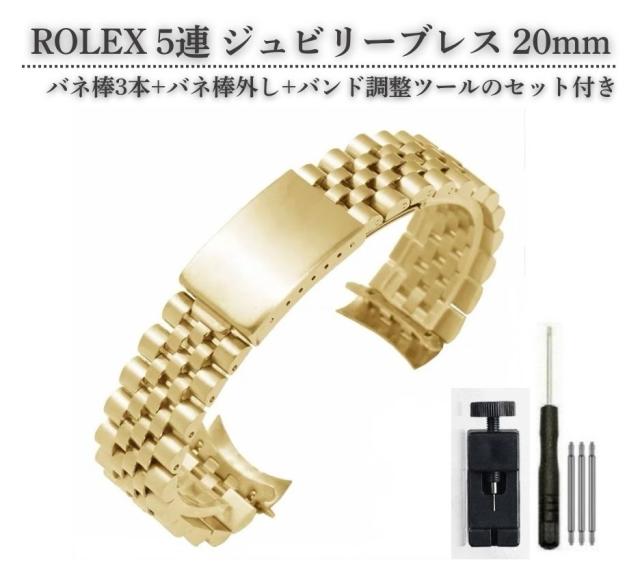 20mm 汎用 5連 ジュビリー ブレスレット SS ステンレス 腕時計 ベルト バンド 弓カン デイトジャスト、デイトナ、サブマリーナ、GMTマスターII など 全3色 ゴールド