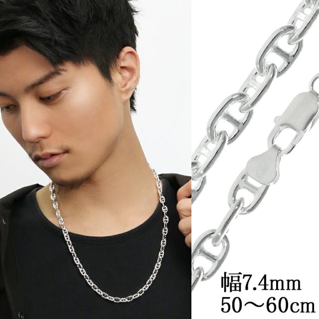シルバーチェーン ネックレス チェーン マリンチェーン 幅約7.4mm 60cm シルバー925 銀 マリン 錨鎖 シルバー925チェーン シルバーネックレスチェーン