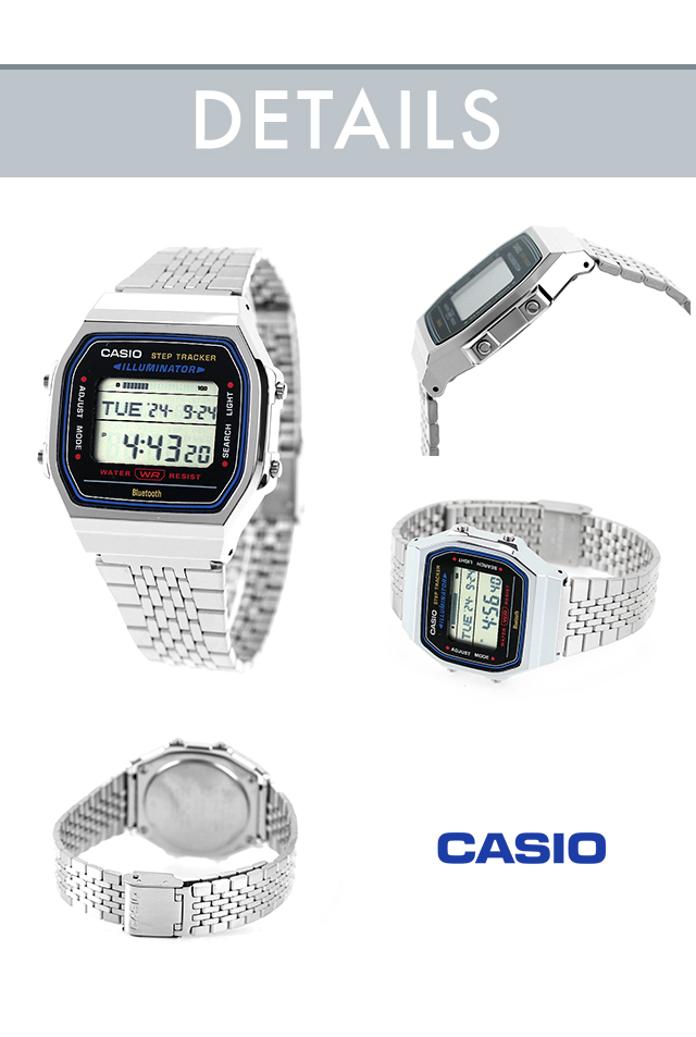 | 仕様 | 日常生活用防水 Bluetooth:スマートフォンと接続し時刻を自動修正 歩数計測機能 ・歩数表示範囲:0〜999,999歩 ・目標達成率表示(目標歩数設定範囲:1,000〜50,000歩、1,000歩単位) ・ステップリマインダー機能(一定時間の間に歩行が少ないと表示と電子音でお知らせ、ON/OFF切替付き) ・歩数グラフ(1時間毎の歩数を7時間分6段階でレベル表示) モバイルリンク/アプリ連携機能 モバイルリンク機能(対応携帯電話とのBluetooth通信による機能連動) 「CASIO WATCHES」対応 自動時刻修正 簡単時計設定 ワールドタイム約300都市 ライフログデータ タイム&プレイス 携帯電話探索 ワールドタイム デュアルタイム(ホームタイムとの時刻入替機能付き) ストップウオッチ(1/100秒(1時間未満)/1秒(1時間以上)、24時間計、ラップ/スプリット付き、計測データを最大200本メモリー(計測年・月・日・時・分、ラップ/スプリットタイム)) タイマー(セット単位:1秒、最大セット:60分、1秒単位で計測) 時刻アラーム5本・時報 ライト LEDバックライト(残照機能、残照時間切替(1.5秒/3秒)付き) LED:アンバー フルオートカレンダー 操作音ON/OFF切替機能 パワーセービングON/OFF切替機能 電池切れ予告機能 ※スマートフォンと連携しない場合は、通常のクオーツ精度(平均月差±15秒)で動作します。 12/24時間制表示切替 |