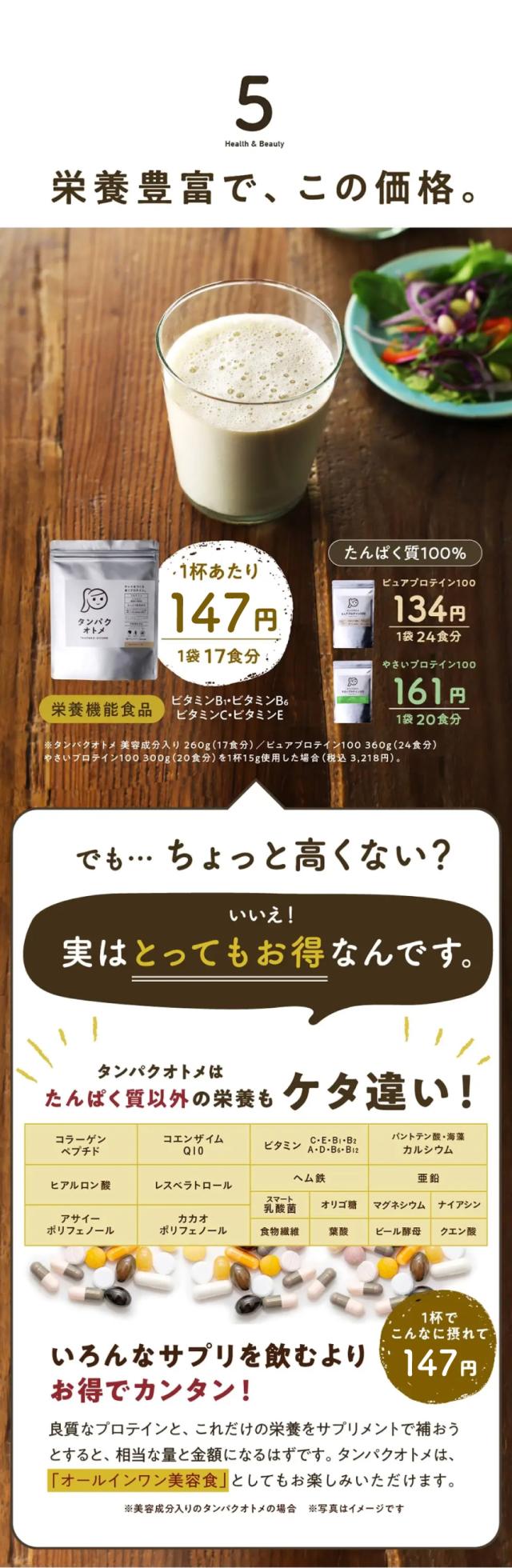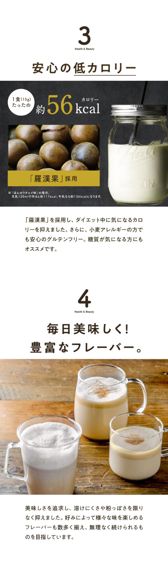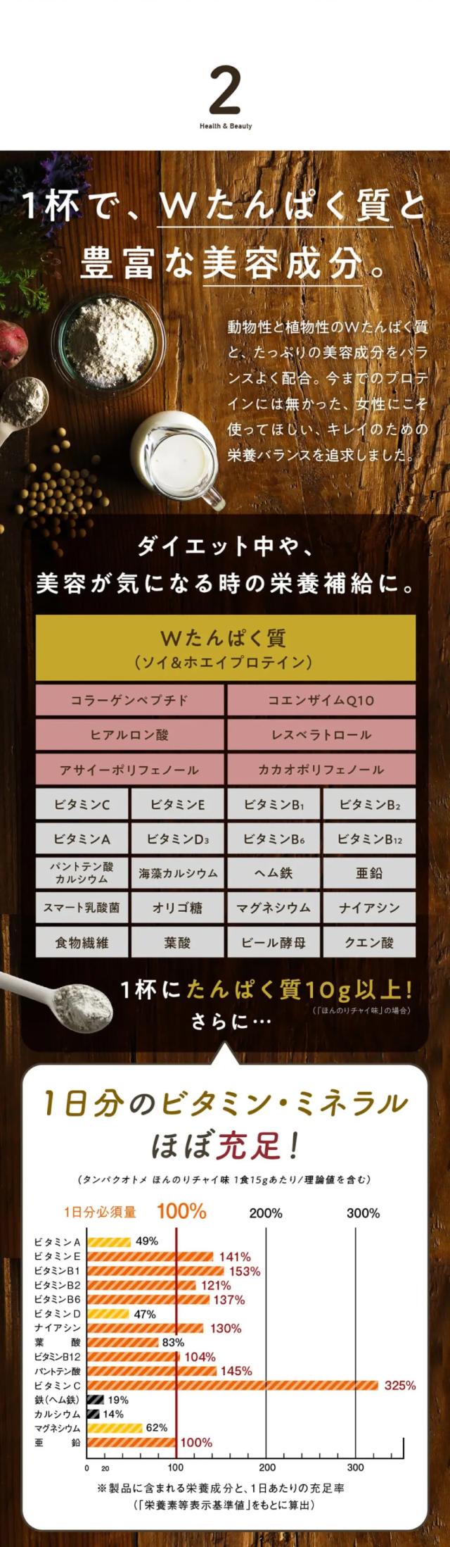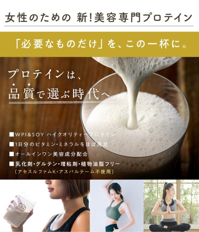 ホエイとソイのWタンパク質と25種類以上の美容成分を配合したキレイづくりを応援するプロテインです。
