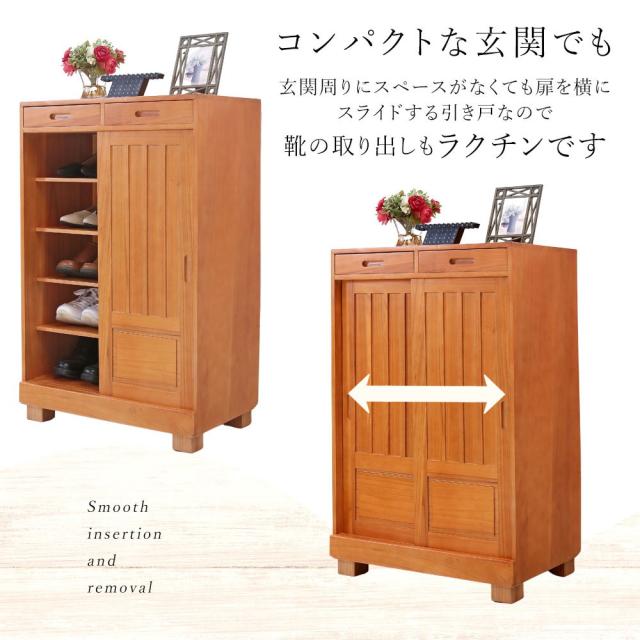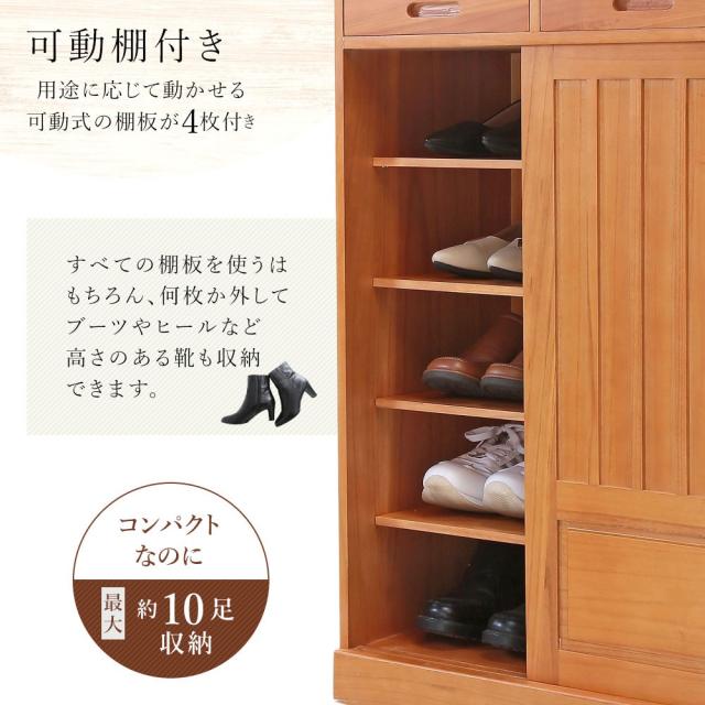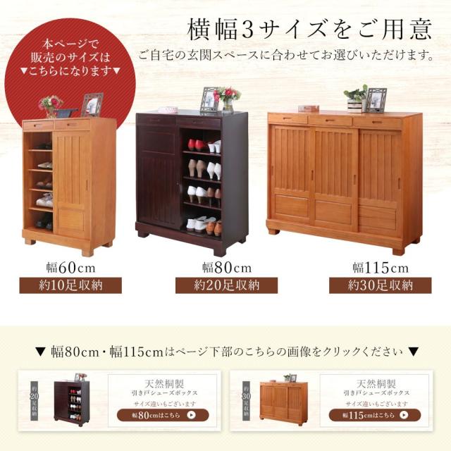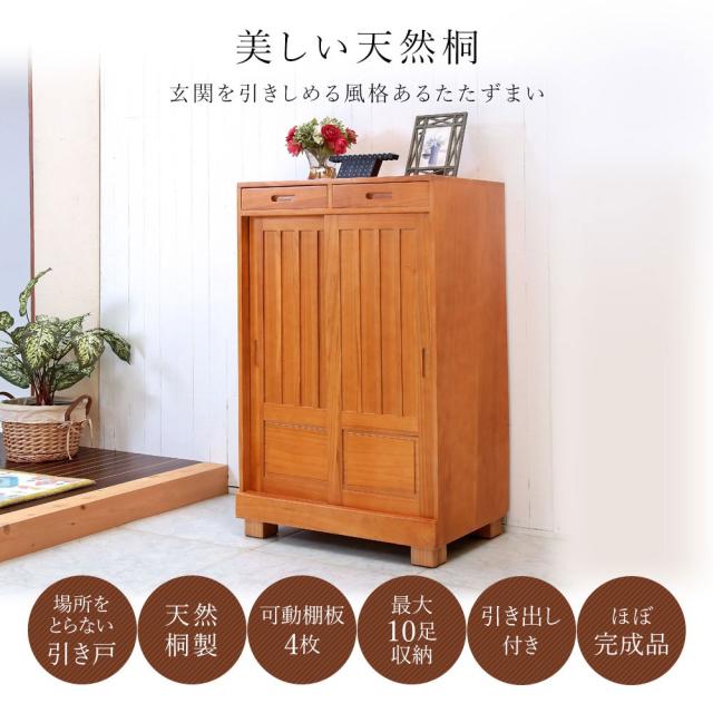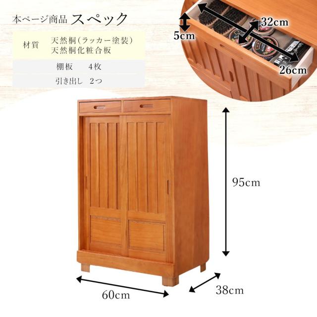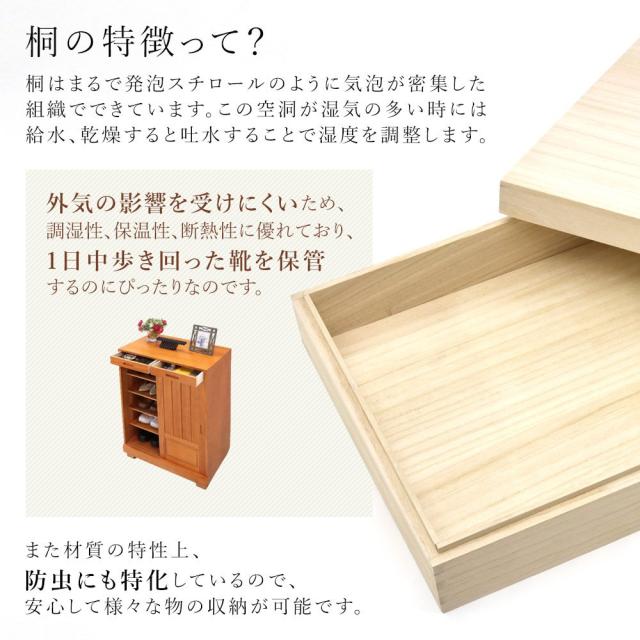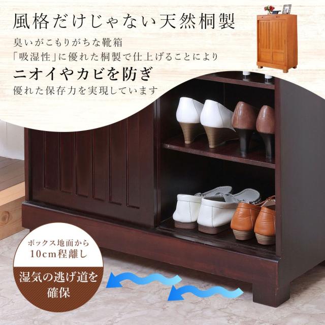 靴箱 和風 天然桐 シューズボックス 幅60cm 引き戸タイプ 引き出し付き 下駄箱 おしゃれ ダークブラウン ナチュラル シューズラック スリム 桐製 大容量