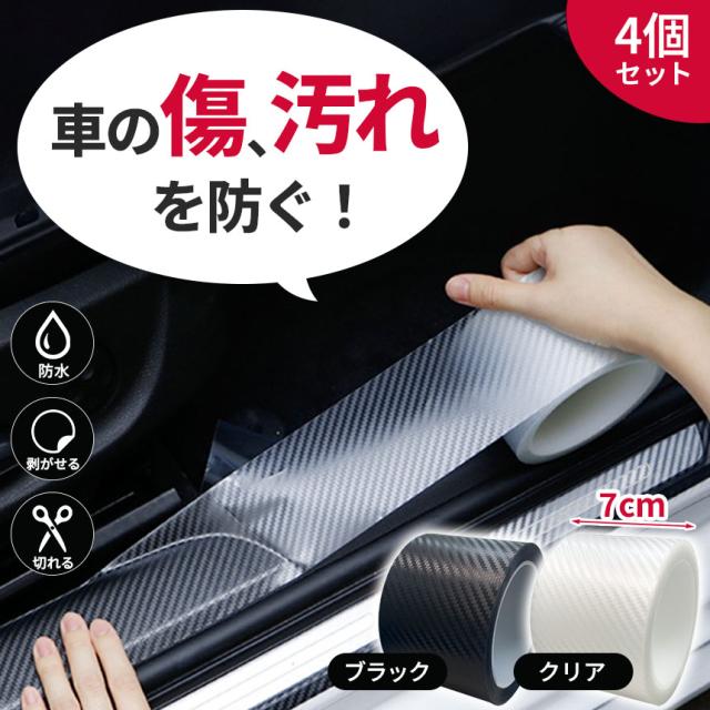 プロテクションフィルム 7cm×5m 4個セット 車 傷 フィルム テープ 傷防止 汚れ ドア ドアフィルム キズ 防止 黒 ブラック クリア 透明 防水 ドアエッジ ステップ ミラー プロテクター 車用 バンパー ガード 保護テープ 粘着テープ シール 初心者 カー用品 車用 衝撃
