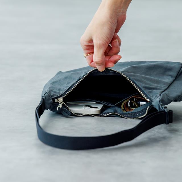 ショルダーストラップの長さを変えて手持ち、肩掛け、斜めがけの3通りの持ち方ができます。 必要最低限のものはしっかりと収納◎
