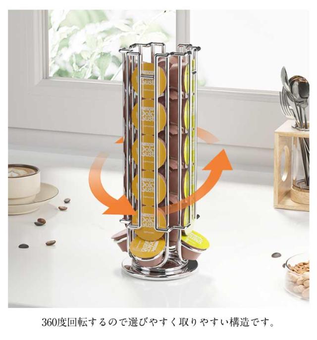 コーヒーカプセルスタンド コーヒーカプセルスタンド カプセルホルダー 回転式 24個用 収納ラック ラック カプセルタワー ブレイクタイム 省スペース 縦型 家庭用 オフィス 事務所 滑り止め
