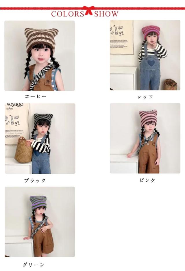 | 大人気耳付きニットシリーズに新作登場! おしゃれで合わせやすいニット帽子は春秋冬のマストアイテム! よく伸びるのでベビーもキッズもOK! 暖かいニット素材で防寒対策もバッチリ 出産祝い、お誕生日のプレゼントにもおすすめ | |