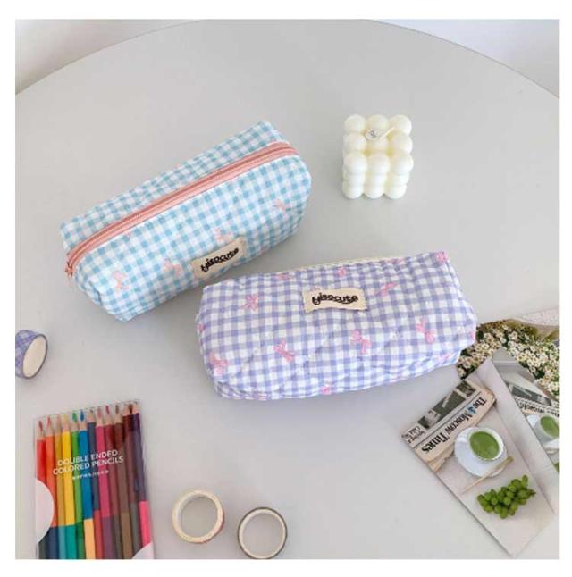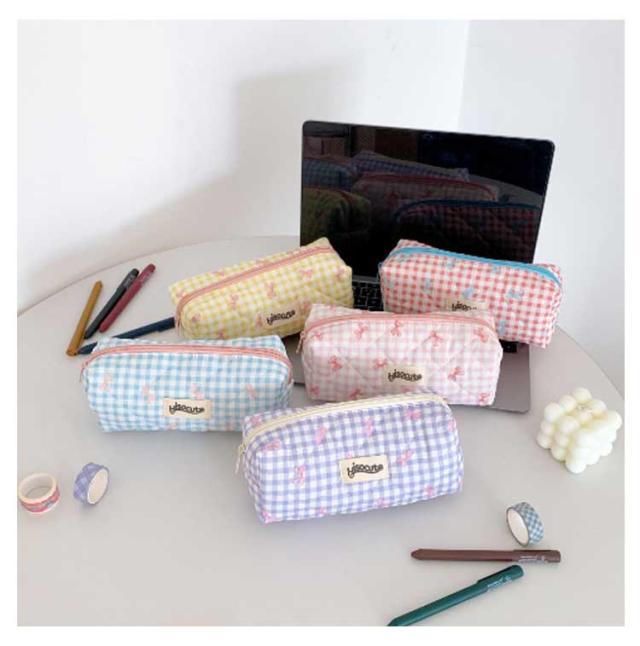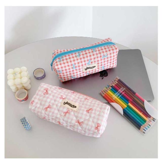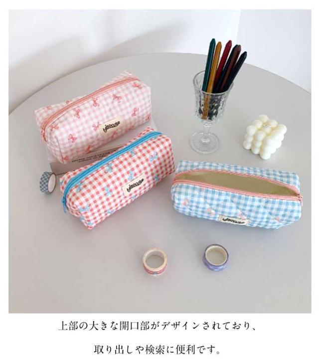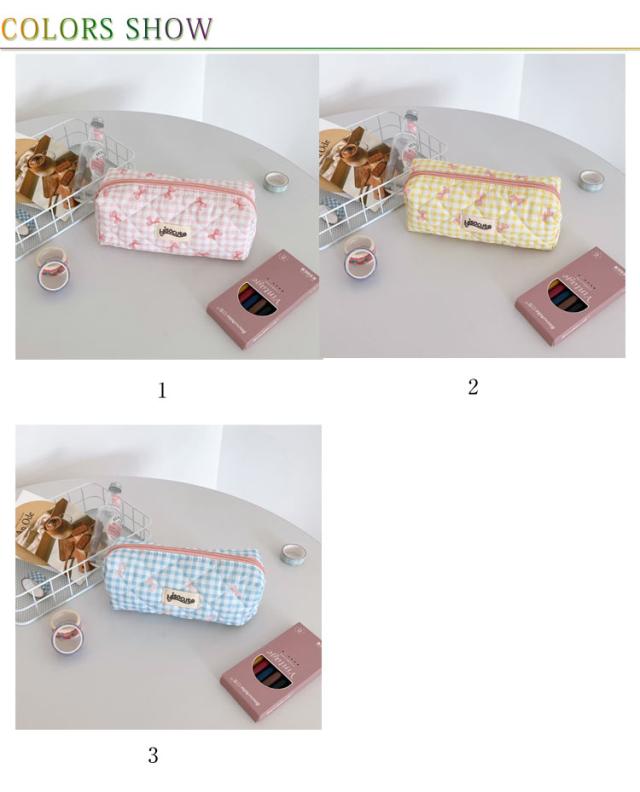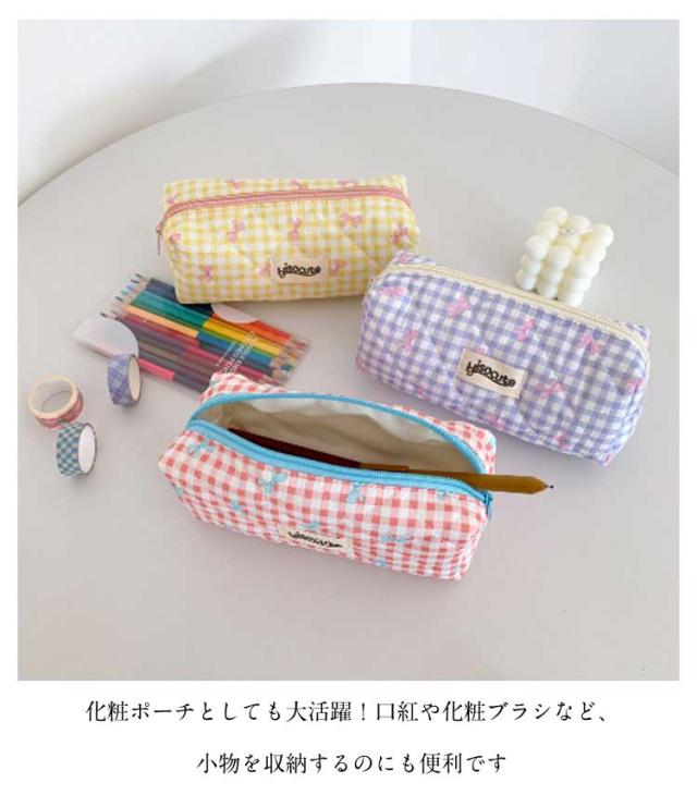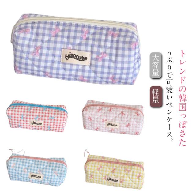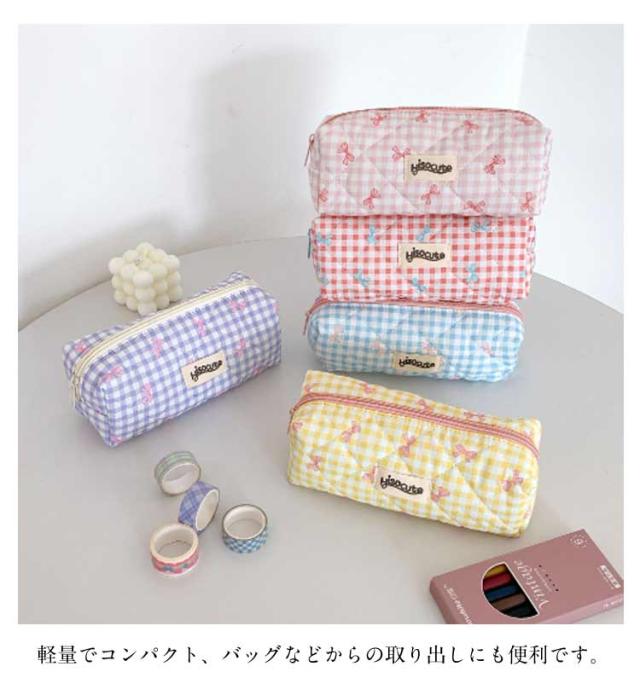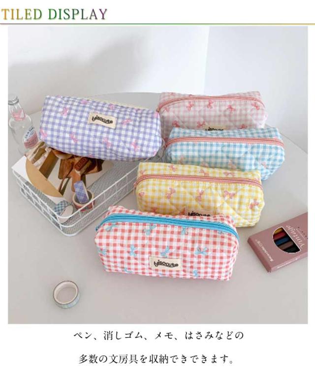 中学生 ペンケース 筆箱 お洒落 キルティング 収納袋 大容量 筆入れ ペンケース リポン付き 高校生 軽量 女の子 可愛い 文房具 収納バッグ マルチポーチ 化粧ポー プレゼント