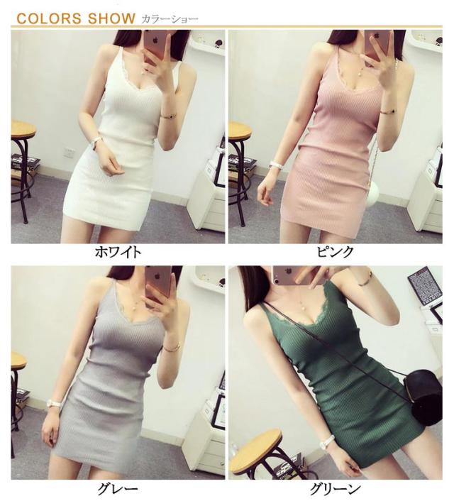 ニットワンピース ロング リブキャミソール 大人 ミニワンピース Vネック ワンピース セクシー キャミソールワンピース ワンピ ミニ キャミソールワンピース ロング丈 ロングキャミソールニットワンピース ニットキャミソール ニット タイト ロング丈