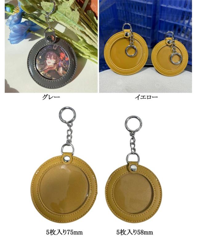キーホルダー 58mm 収納 かわいい 【5枚セット】缶バッジカバー PUレザー 保護カバー 缶バッジ入り 缶バッジ 75mm ポーチ 痛バッグ 【5枚セット】缶バッジカバー 傷防止 クリア おしゃれ 写真フレーム 缶バッジ カバー プレゼント ギフト