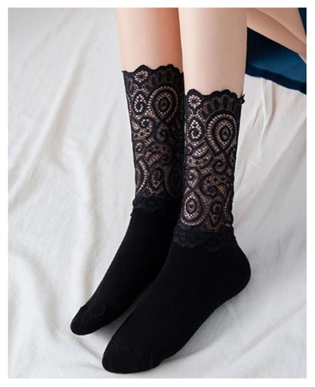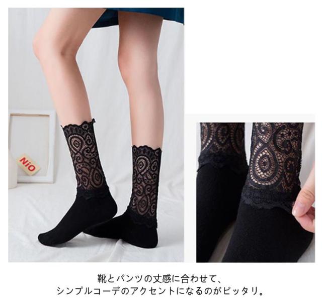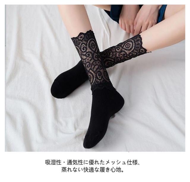 レディース レースソックス 春 レース シースルー 靴下 2足セット レース靴下 くつした ソックス 透け感 きれいめ かわいい ハイソックス 冬 ソックス 秋 スニーカー ソックス 2足組 ブーツ 蒸れない 通気性 コーディネート ホワイト ブラック
