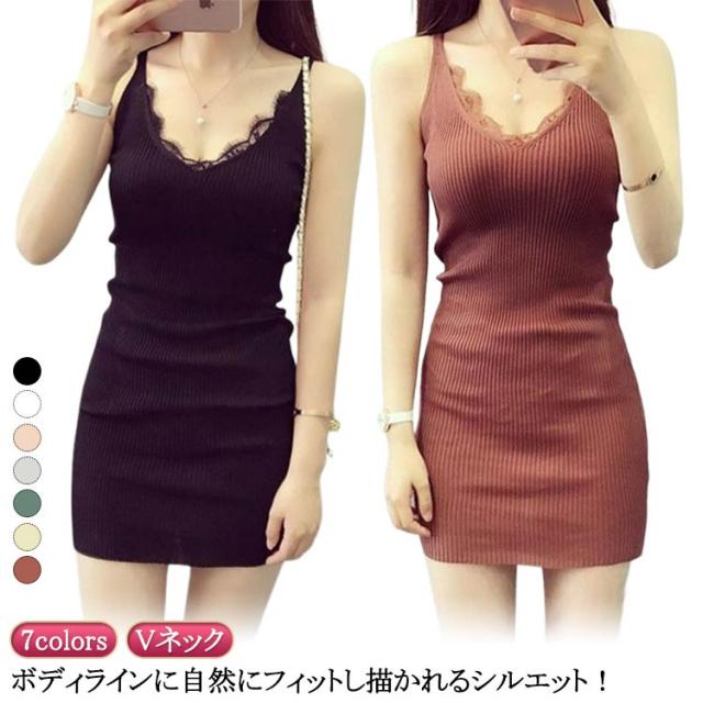 キャミソールワンピース ミニワンピース 大人 ワンピース ロング ミニ リブキャミソール キャミソールワンピース Vネック セクシー ロングキャミソールニットワンピース ワンピ ロング丈 ニットワンピース ニットキャミソール ニット タイト ロング丈
