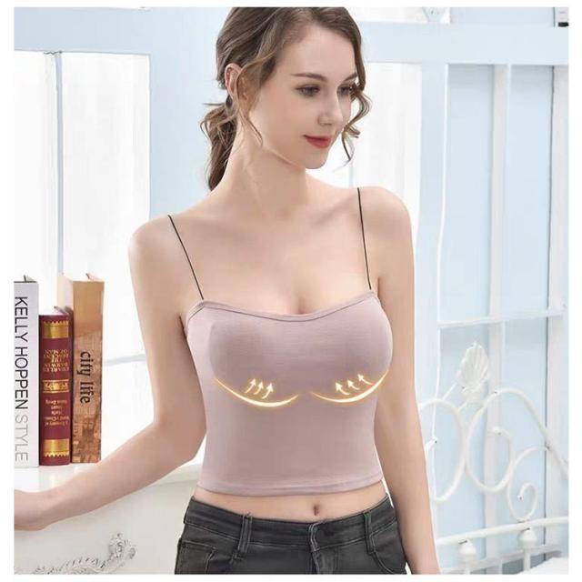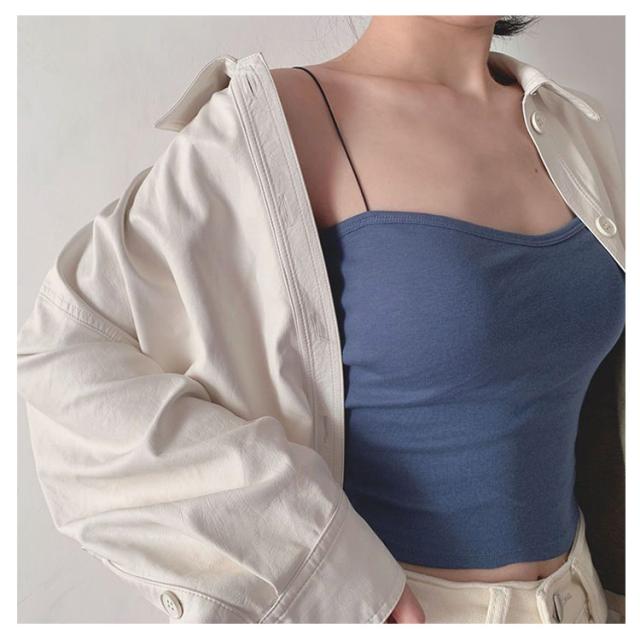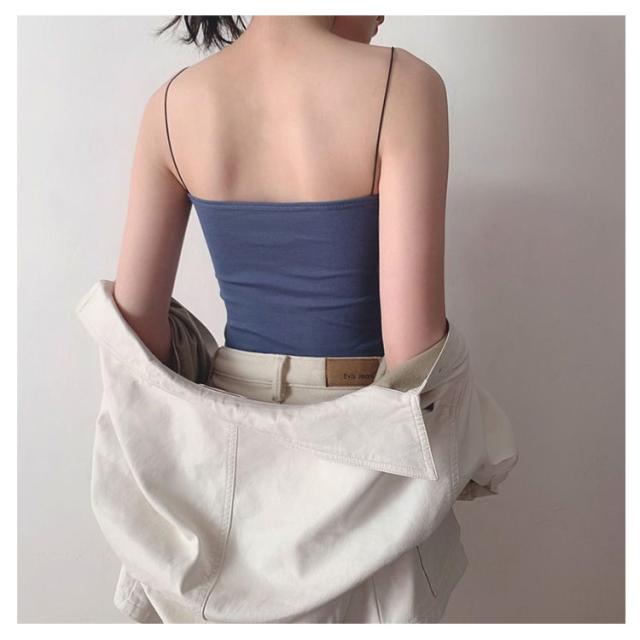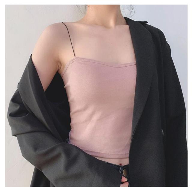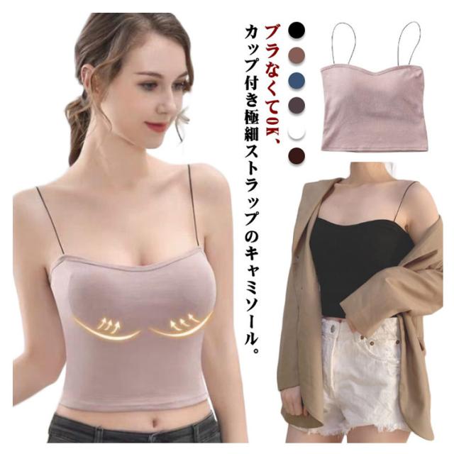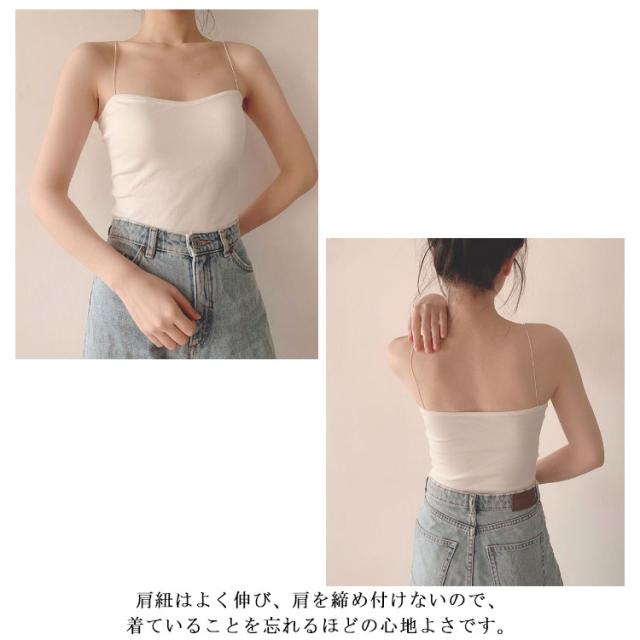 【2枚セット】カップ付き 下着 キャミソール 極細紐 細ストラップ キャミ 着痩せ タンクトップ ショート丈 レイヤード 重ね着 インナー 無地 シンプル 可愛い 【2枚セット】カップ付き 伸縮性 ストレッチ トップス お洒落