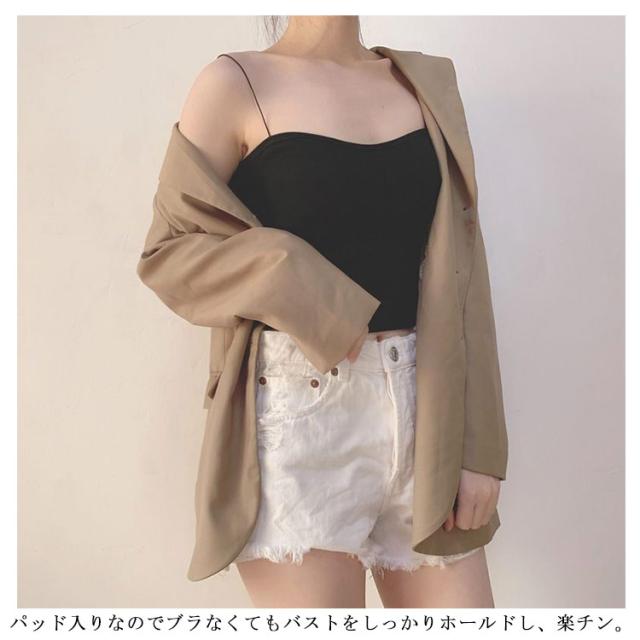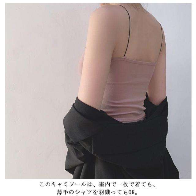 | ブラなくてOK、カップ付き極細ストラップのキャミソール。 伸縮性のある生地が体にフィットし、どんな体型の方でも、どんな運動をしている方でも、不快感を感じさせません。 パッド入りなのでブラなくてもバストをしっかりホールドし、楽チン。 肩紐はよく伸び、肩を締め付けないので、着ていることを忘れるほどの心地よさです。 このキャミソールは、室内で一枚で着ても、薄手のシャツを羽織ってもOK。 | |