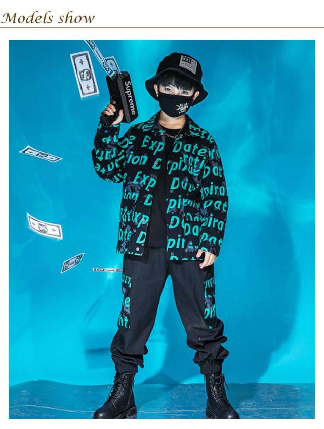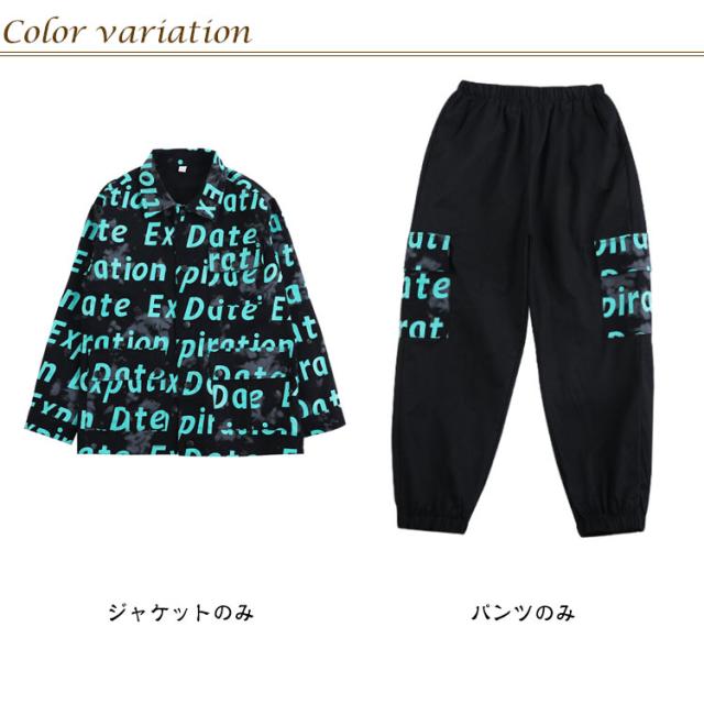キッズ 英字柄 上下セット 男の子 衣装 110-180cm 単品 セットアップ ジャケット カーゴパンツ トップス ダンス ロングパンツ ヒップホップ 女の子 HIPHOP k-pop ダンス衣装 子供服 練習着 ステージ衣装 演出服 ストリート