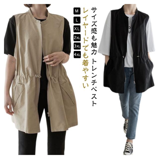 ベスト レディース ロングジレ ジレンチ ベスト ライトアウター サマー ジレ テーラード 夏 ジャケット コート ハーフ丈 裏地付き 羽織り レイヤード 春 重ね着 トレンチベスト 秋 冬 きれいめ 大人 カジュアル レディース 体型カバー