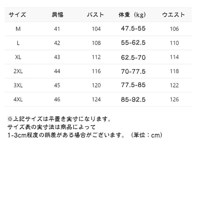 | サイズ | M L XL 2XL 3XL 4XL |