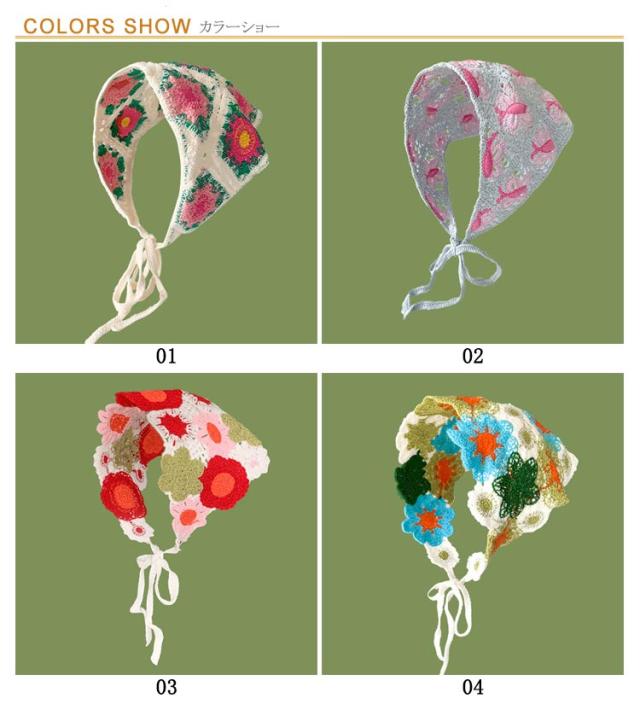 | 【2枚入り】【小顔効果抜群】 さっとかぶれて簡単楽々三角巾タイプのバンダナ。 透かし編みにしたデザインがとても繊細でお洒落。 カチューシャの様な感じでも使ってもらえるのでこれからの季節にはぴったり! フランスのレトロな美しさを醸し出し、夏の服装に優雅さを加えるのに最適。 コンパクトになりますので持ち運びにも便利。 | |